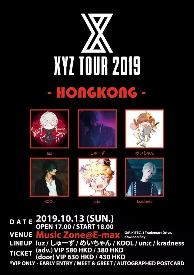 2年前在上海举办,而距离在香港举办已过去3年的XYZ TOUR。终于在这个秋天他们回来了!在日本他们也开始了巡演,并且发布了新歌,9月他们将在横滨Arena进行首场体育馆演出,发展势头非常惊人!希望海外的粉丝也能感受他们这股气势!所以这次决定在上海和香港举办2场公演。为了让大家原封不动感受到日本XYZ TOUR的气势,这次原来的5人成员出演将新增1人,共6人来进行现场演出。千万不要错过这次机会,请大家务必要来会场玩哦!