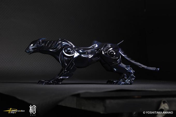 天野喜孝从很早以前就一直在各种作品中加入黑豹的元素,虽然不知道原因,但是这个形象一直都在他心里存在。特别是在没有主题,随手练习的时候经常会画这个形象,持续了几十年,这究竟是什么呢?虽然他自己到现在也无法很好的解释……【PANSA】是来自于未来的机器,在未来科幻世界中,机器和生物也许是一体的。即使背景设为现在,只要有大脑,形态也可以是机器或者是未来更为先进的电脑。在机器和生物没有差别的时代诞生的【PANSA】会回到过去。比如从1万年后的未来回到现在。虽然对于现在的我们来说【PANSA】充满了科幻感,充满了不可思议,但也许在未来,【PANSA】是理所当然普通的存在。于是天野喜孝创作了【PANSA】,制作了【PANSA】。机械和智慧融为一体,在某种意义上可以理解为电脑,也可以理解为AI。【PANSA】也许是未来一种全新的生物,是基于一种幻想创造的。