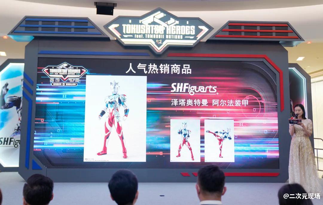 发布会上,泰迦奥特曼、假面骑士圣刃惊喜登台,为现场的观众带来了展会热销商品的特别介绍。