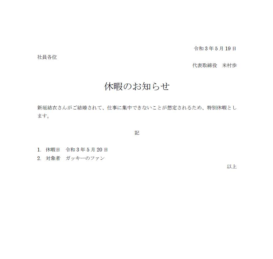 日本一家IT公司,宣布介于新垣结衣结婚,公司所有了新垣结衣的粉丝都可以在5月20日放假一天。