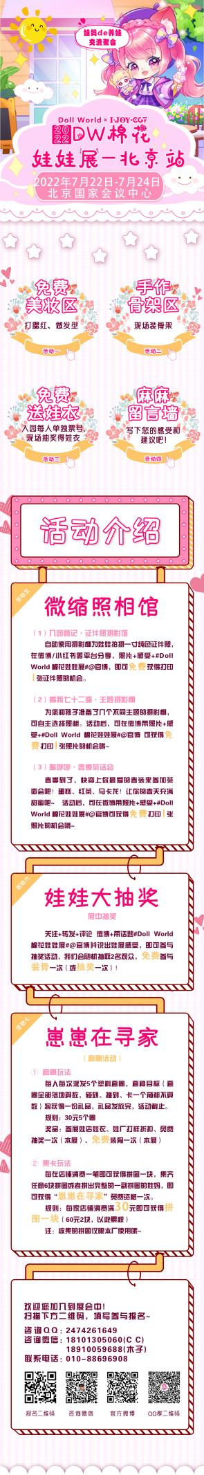 Doll World棉花娃娃—北京站来了,2022年7月22日-24日,在北京国家会议中心内开展为期3日的棉花娃娃展。本次展会覆盖棉花娃娃及周边产品, 展会内汇集国内各大娃店、娃厂、娃社、手作娘以及棉花娃娃爱好者,也给大家提供更多更好的展示与交流平台。