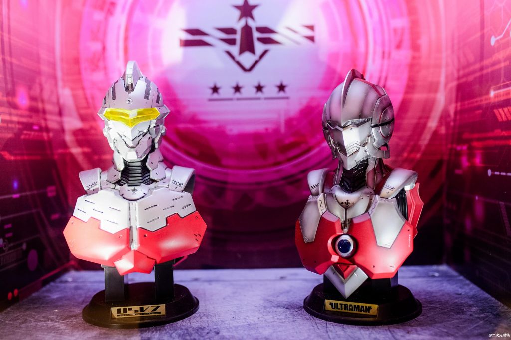 除此之外,主持人为大家一一讲解了本次展会中多款国内首次亮相的展示品——如古库尔西萨石像、怪兽炸弹、徽章制造器等。另有豪华展示阵容:全新奥特曼珍贵原画、主演亲笔签名的色纸;全新奥特曼系列55周年纪念雕像——初代奥特曼;从平成至新生代的奥特英雄变身器组;超全集结的机动奥特曼……绝对让观众大开眼界。虫洞设计的展示空间为整个展会灌注了新奇观展体验,将奥特英雄世界急速拉入观众眼帘。