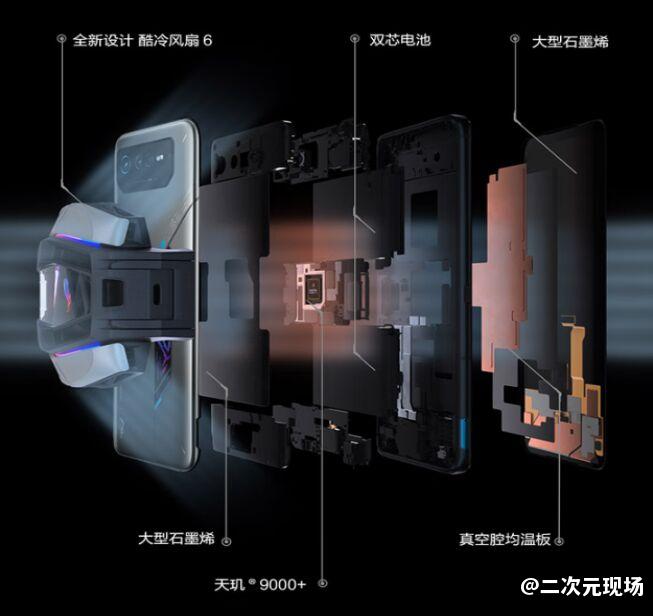 针对长时间竞技后带来的手机积热及降频掉帧问题,此次ROG6天玑系列给出了标杆级解决方案。ROG6天玑版保留了双层石墨烯、真空腔均热温板、SoC中置等设计。在3300mg氮化硼冷凝材料的加持下,相比于普通手机可进一步降温多达10℃。位于中央的SoC在散热板及石墨烯的导热下,减少了边框区域的发热量,握持手感更佳。