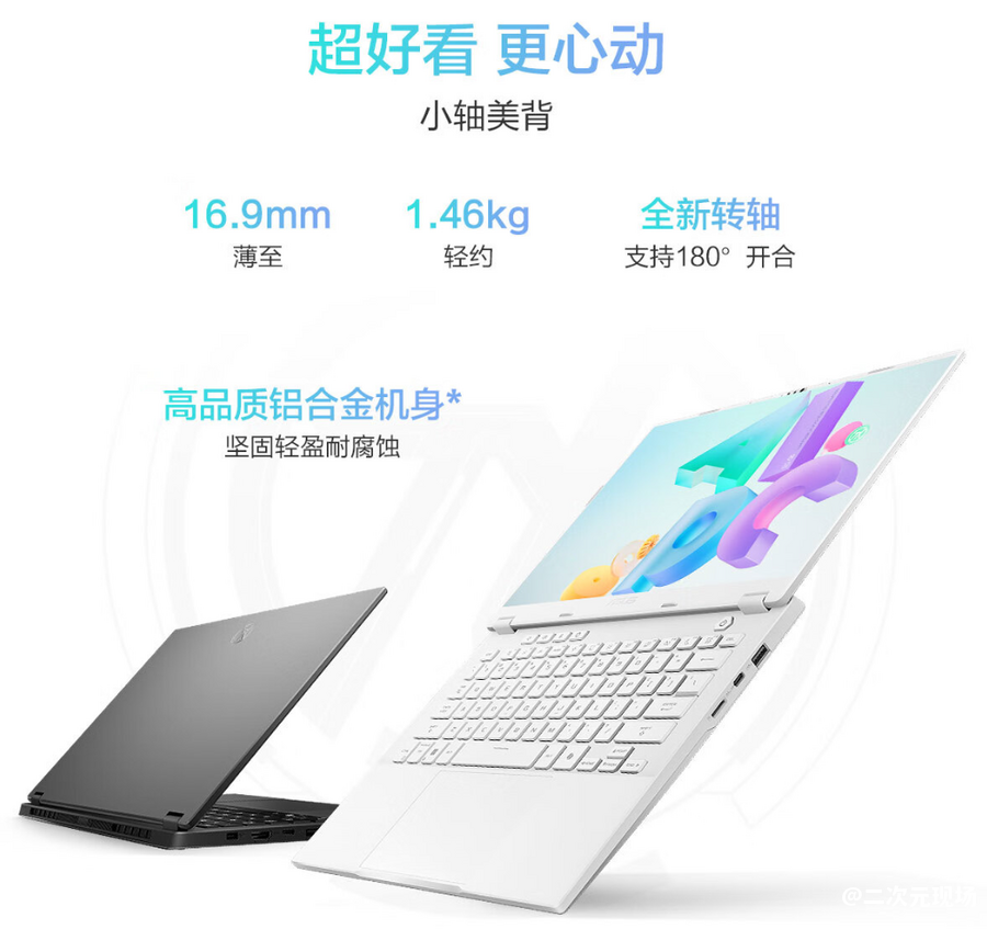 华硕天选Air 2024由全新14英寸模具打造,机身A,D面采用高品质铝合金材质,同时整机质感十分轻盈,轻约1.46kg,薄至16.9mm,可轻松塞入背包外出携带使用。另外天选Air还将73Wh大容量电池塞进了14英寸机身内,保障了电脑的续航表现,离电使用的场景下无惧电量焦虑。